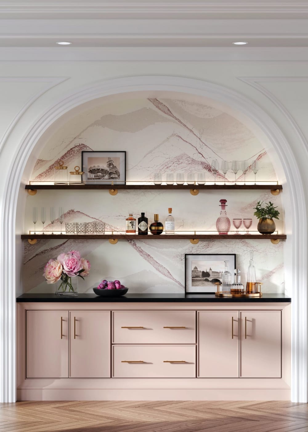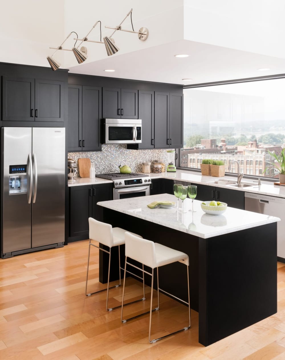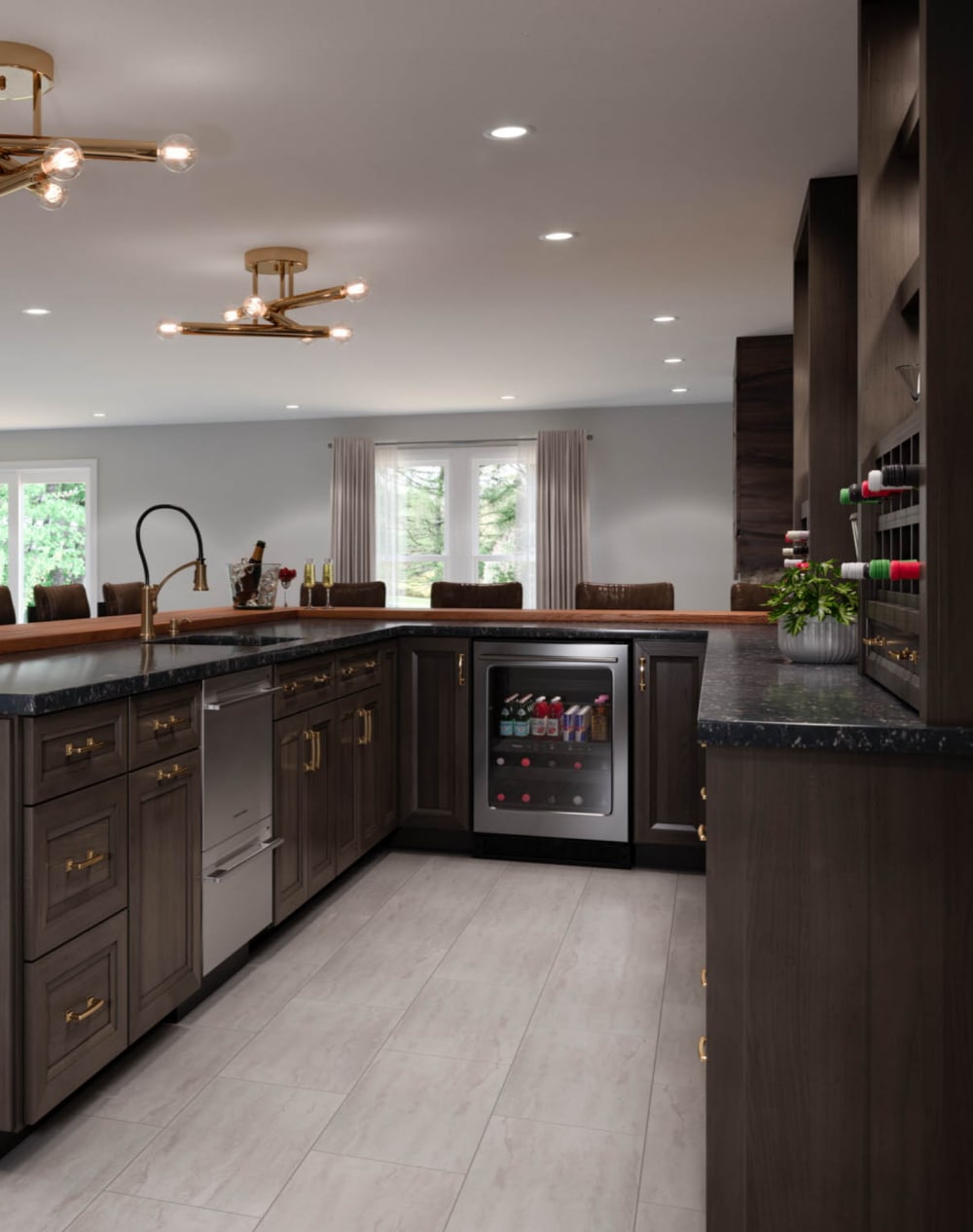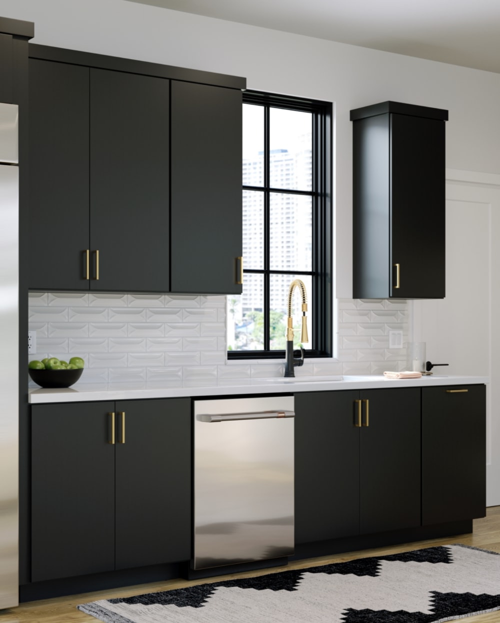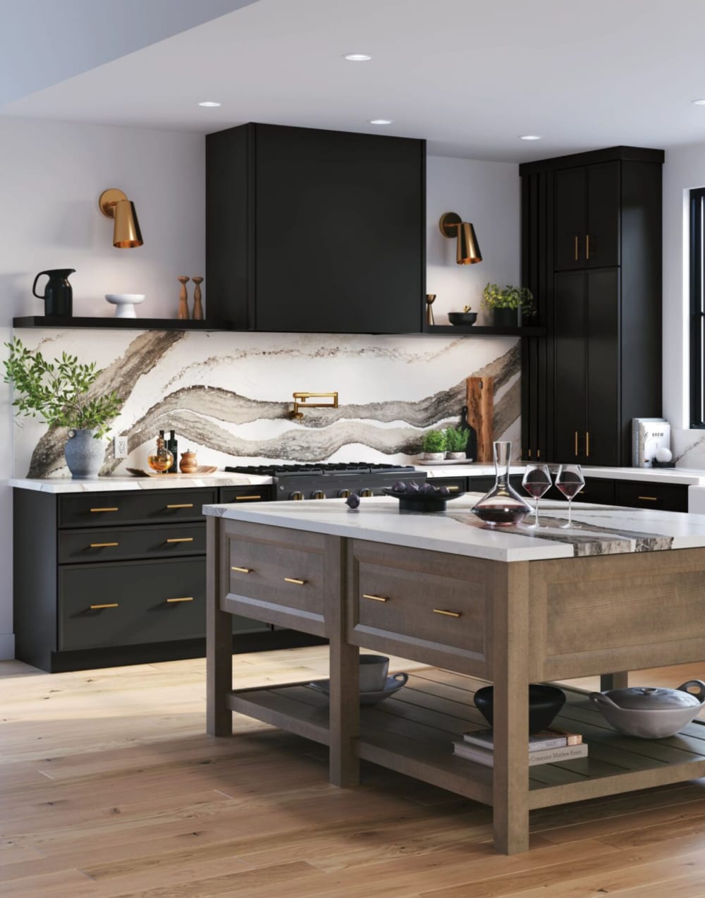 Black, espresso, and charcoal cabinets create luxurious spaces with a grounded, high-end feel. Dark cabinetry works beautifully with bold marble veining, matte finishes, and brushed metal accents. These striking tones are ideal for open layouts where lighting and contrast enhance their richness.