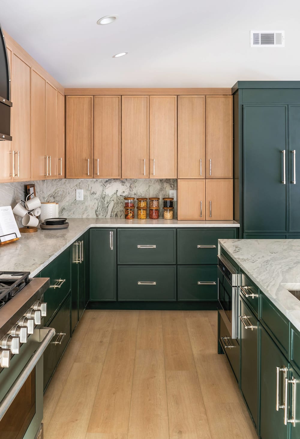 Bold two-tone kitchens offer sophistication, dimension, and creative freedom. Combining light and dark cabinetry adds visual balance and defines focal points within the space, whether that's a striking island base, contrasting uppers and lowers, or a mix of wood grain and painted finishes. High-contrast designs are the perfect balance of classic and fresh.