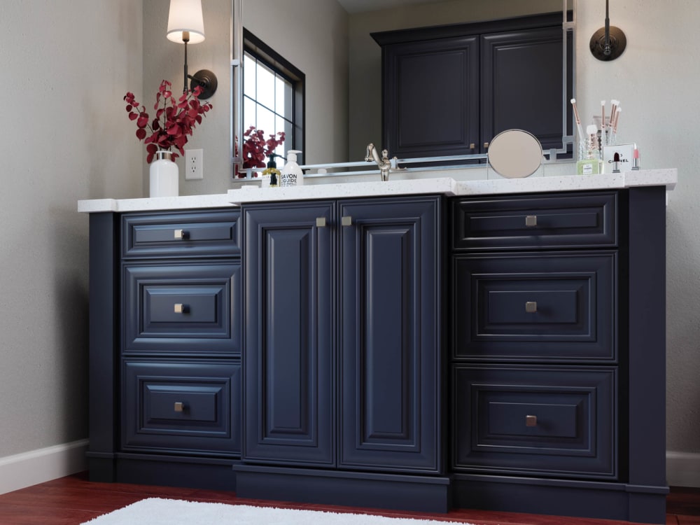 Absolutely. Bold colors can add depth and personality even in compact spaces when used strategically. Consider limiting darker tones to lower cabinets or a vanity, while keeping walls and upper surfaces light to create balance. Glossy finishes, open shelving, and reflective hardware can help bounce light around the room, giving the illusion of more space without sacrificing impact. In smaller areas like powder rooms, bold cabinetry can make a memorable statement.