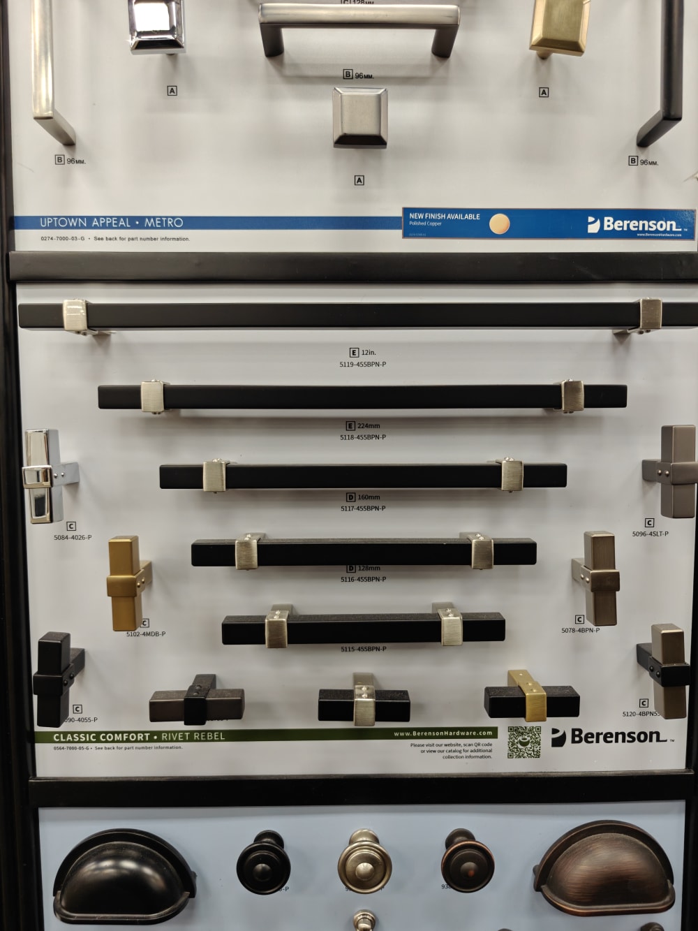 Brands include: Top Knobs, Emtek, Schwab & Co, Berenson, Jeffrey Alexander, and Amerock